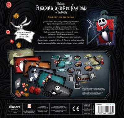 Pesadilla Antes de Navidad: Compite por las Fiestas es un juego de mesa ágil y estratégico donde tendrás que tomar un montón de decisiones. Prepárate para disfrutar de tus personajes favoritos y consigue todas las fichas de Fiesta que puedas para hacerte con la victoria.